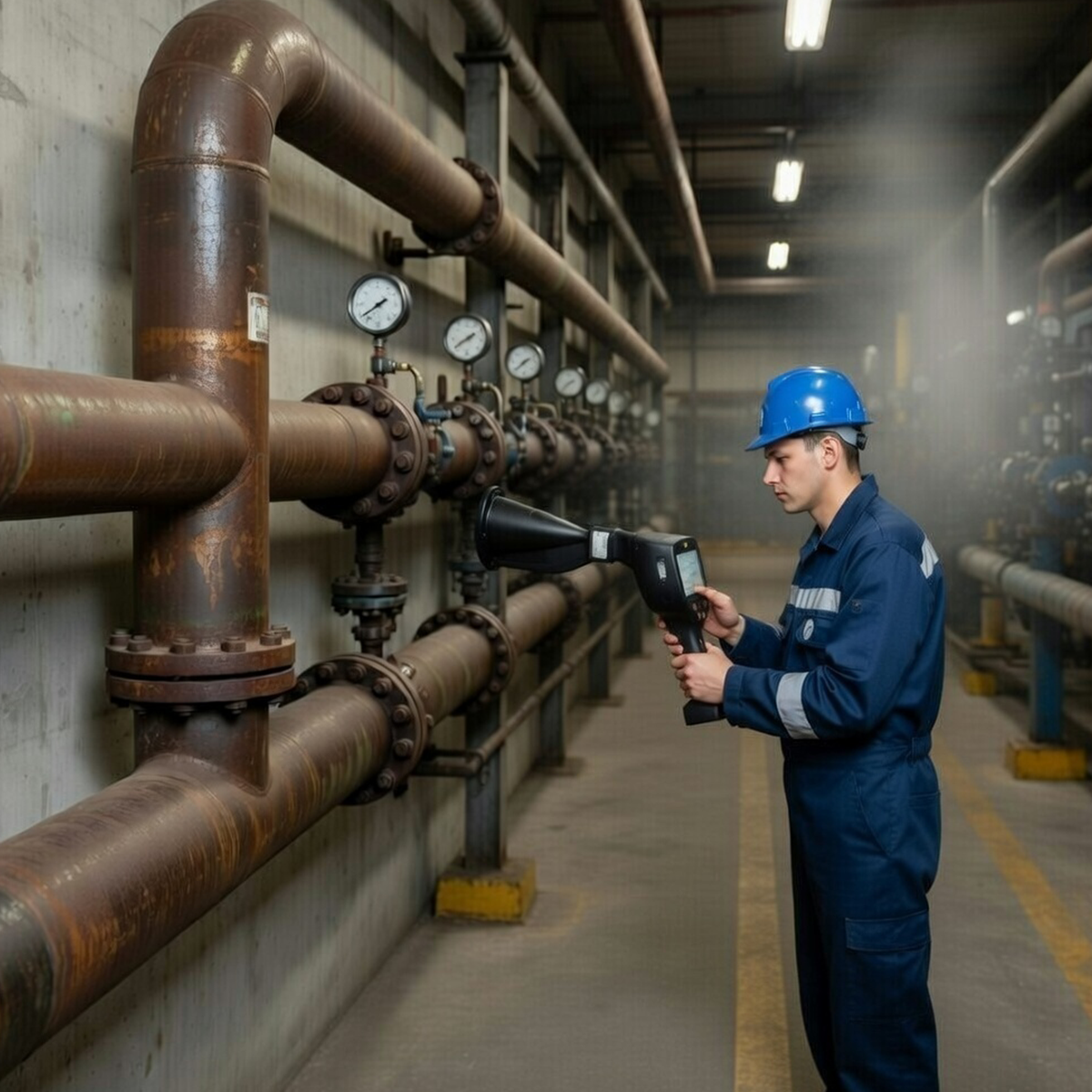 Our certified technicians perform systematic ultrasound-based leak detection – we locate even the smallest, invisible leaks that the human ear cannot hear and that thermal cameras rarely detect. Every identified leak is tagged, documented with photos and a detailed report, and you receive a clear prioritized action list with the calculated savings potential for each fix.
